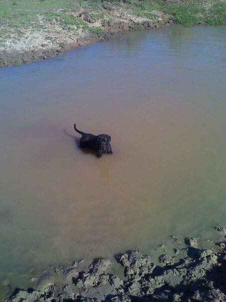 Dozer and I would play and play. I would lay on the ground and let him attack me and I would pretend to bite him back. I showed him all around the ranch and taught him how to swim in the ponds. We would make several trips a day to the nearest pond to go swimming. Dozer was such a good brother to me and I loved him very much. He was always scared of everything even though I tried to teach him to be brave. Richard was proud of Dozer too.
