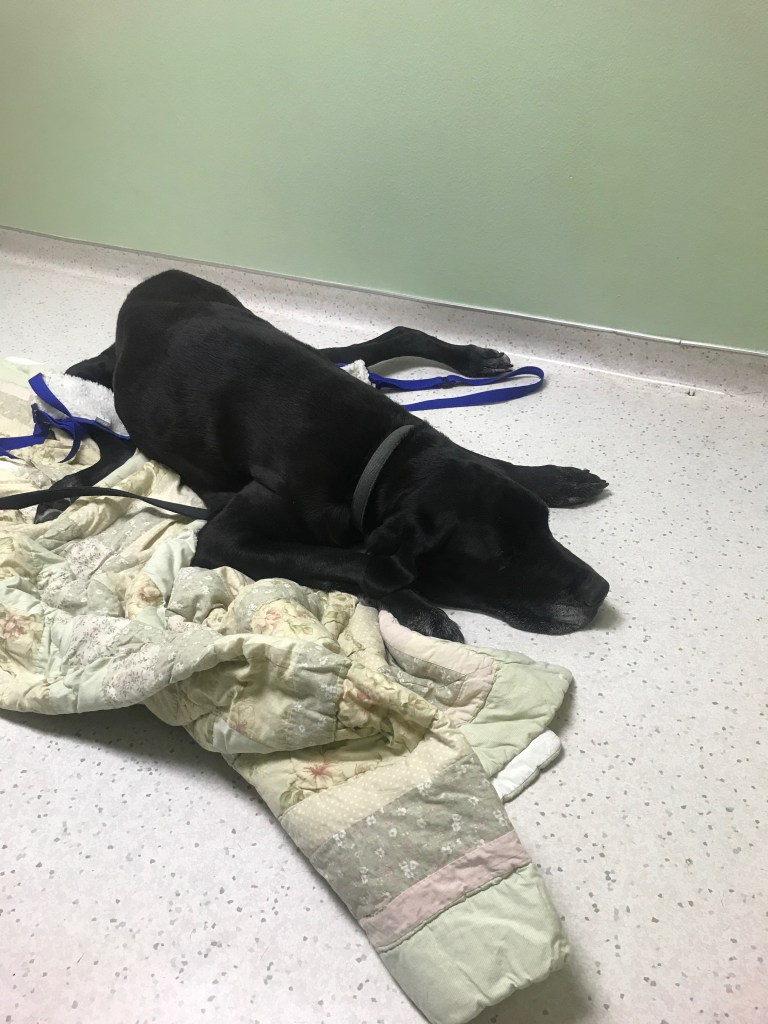 A few days later the pain was so bad I collapsed while I was outside. This made dad extremely sad. He brought an old rug from the house and moved me onto it and put a blanket over me. I could see everyone in the house was sad because I was sick. My sister Kaylee came with her dog Dixie and I couldn’t play with her. She was extremely hyper and I usually ignored her anyway.