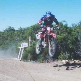 We waited rather impatiently for the race to start. There was a chilly morning breeze blowing in off the ocean. Dayton had a borrowed a jacket from me to wear because he was cold. We could see a thick fog, also known as “marine layer” piled up against the mountains just east of town. This always wreaked havoc on the riders as they would not only contend with dust, but also fog. Instead of having some dust stick to the goggles; mud would form. But wiping with a glove was futile and would only smear the lens making a bad situation dangerous. The fog also grounded the rescue chopper so the race was put on hold for a few minutes while waiting for it to become airborne.
