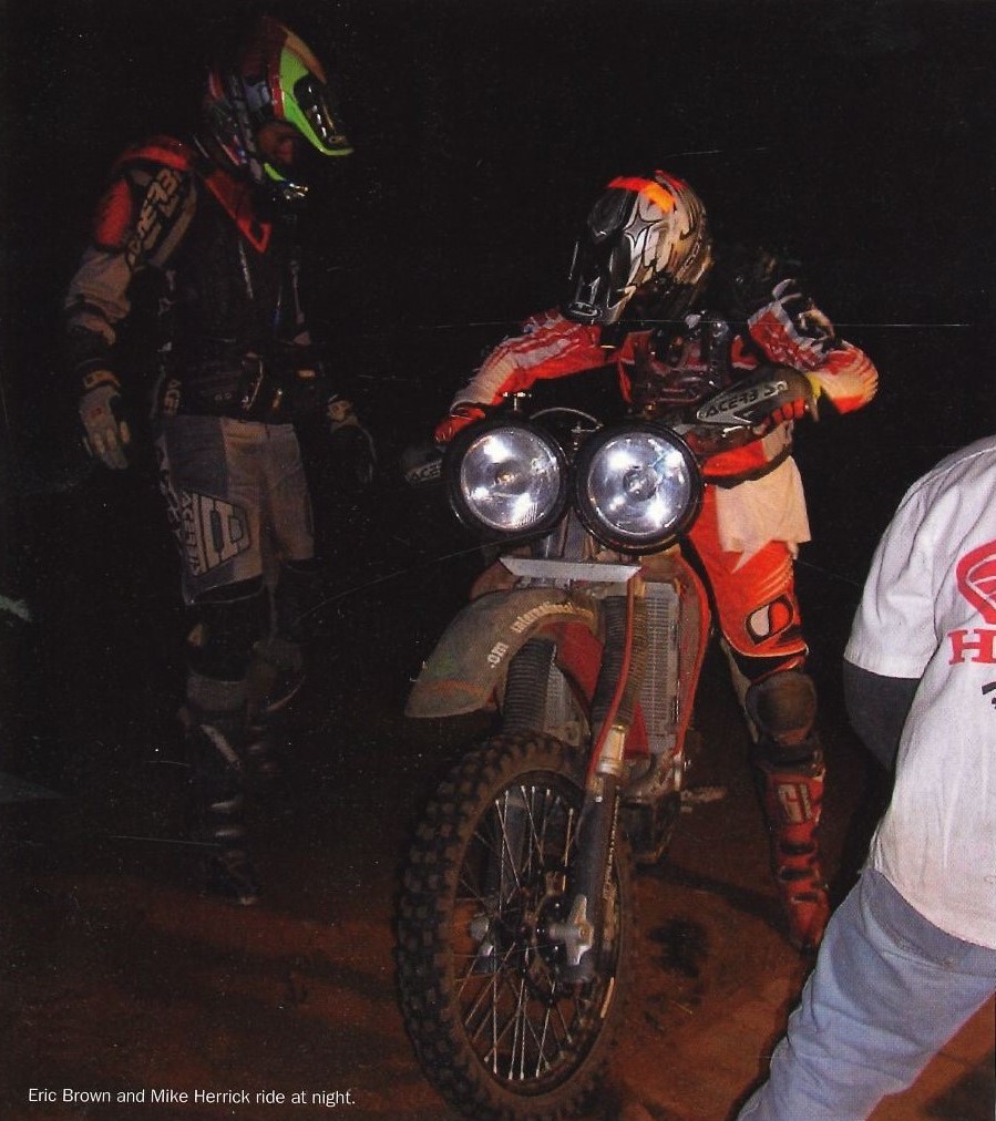 I tried to loosen up in the cold morning air. About an hour after Eric arrived another bike approached. This one slowed down and seemed to be a little more cautious than the rest. I assumed it was Mike, but in the dark it was nearly impossible to tell. I could see the rider was looking for his teammates, so we started frantically waving. Mike saw us and pulled over. The bike was running well and still in one piece. We didn’t shut the engine off. Eric made some adjustments to the headlights that he felt were needed. I threw my leg over the seat and after a few pleasantries headed down the hill into the village like the previous vehicles. I made a mental goal for myself, finish the race before the sun came up.